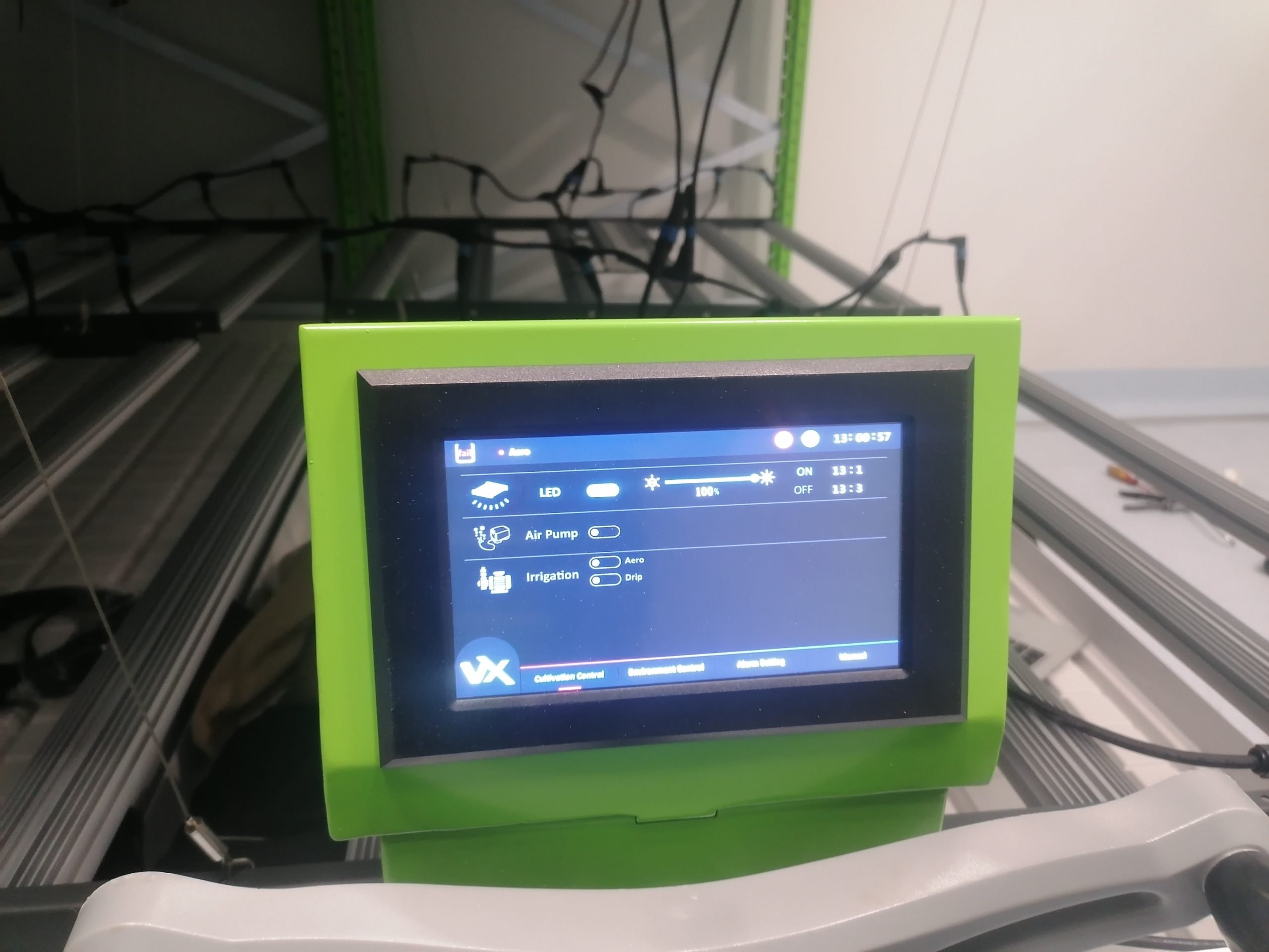 Debido a que están en un edificio de varias plantas y, la ocupación es muy alta, no tuvieron mayor espacio que 6,5*3,5mts, es decir, 22,75m² pero con una altura de 4,10mts, por lo que propusimos crecer en vertical con nuestro VX Grow Rack System pero, solo con la integración de las luces LED, riego y ventilación eran a cargo del cliente. Obviamente en Virex se propuse todo el sistema completo: LED, riego por sistema aeropónico y ventilación, todo controlado desde nuestro panel de control táctil pero, debido a que el espacio era reducido, no cabían las unidades de riego que se montan en la parte frontal del rack, por lo que el cliente asumió la parte de riego por su cuenta.