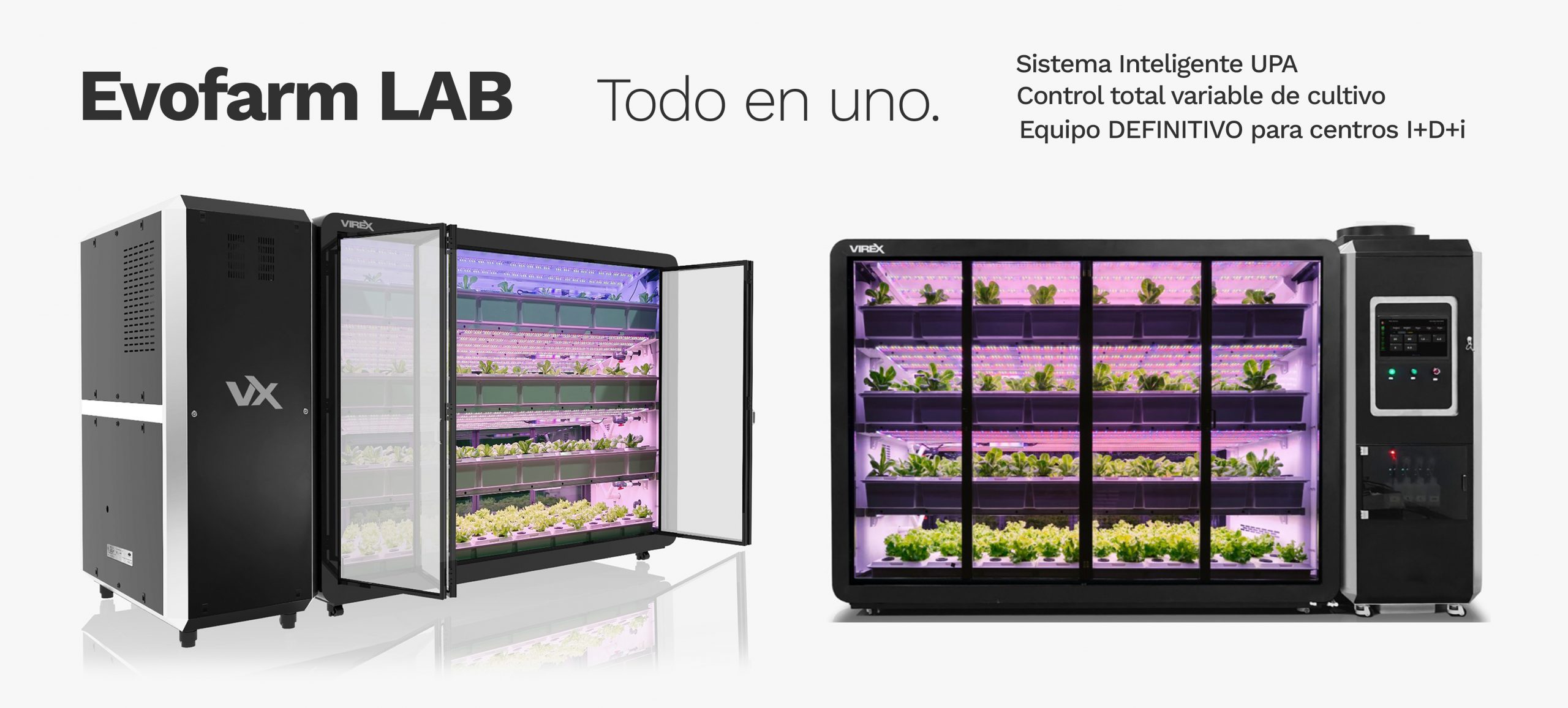 - La Unidad de Procesamiento Agrícola (UPA) permite el control en tiempo real y el procesamiento de datos de clima, nutrientes, flujo de aire y sensores. El sistema puede gestionarse en cualquier momento a través de la aplicación móvil o pantalla táctil, permitiendo el seguimiento de datos clave como el consumo energético, CO₂, insumos, nutrientes y rendimiento lumínico.