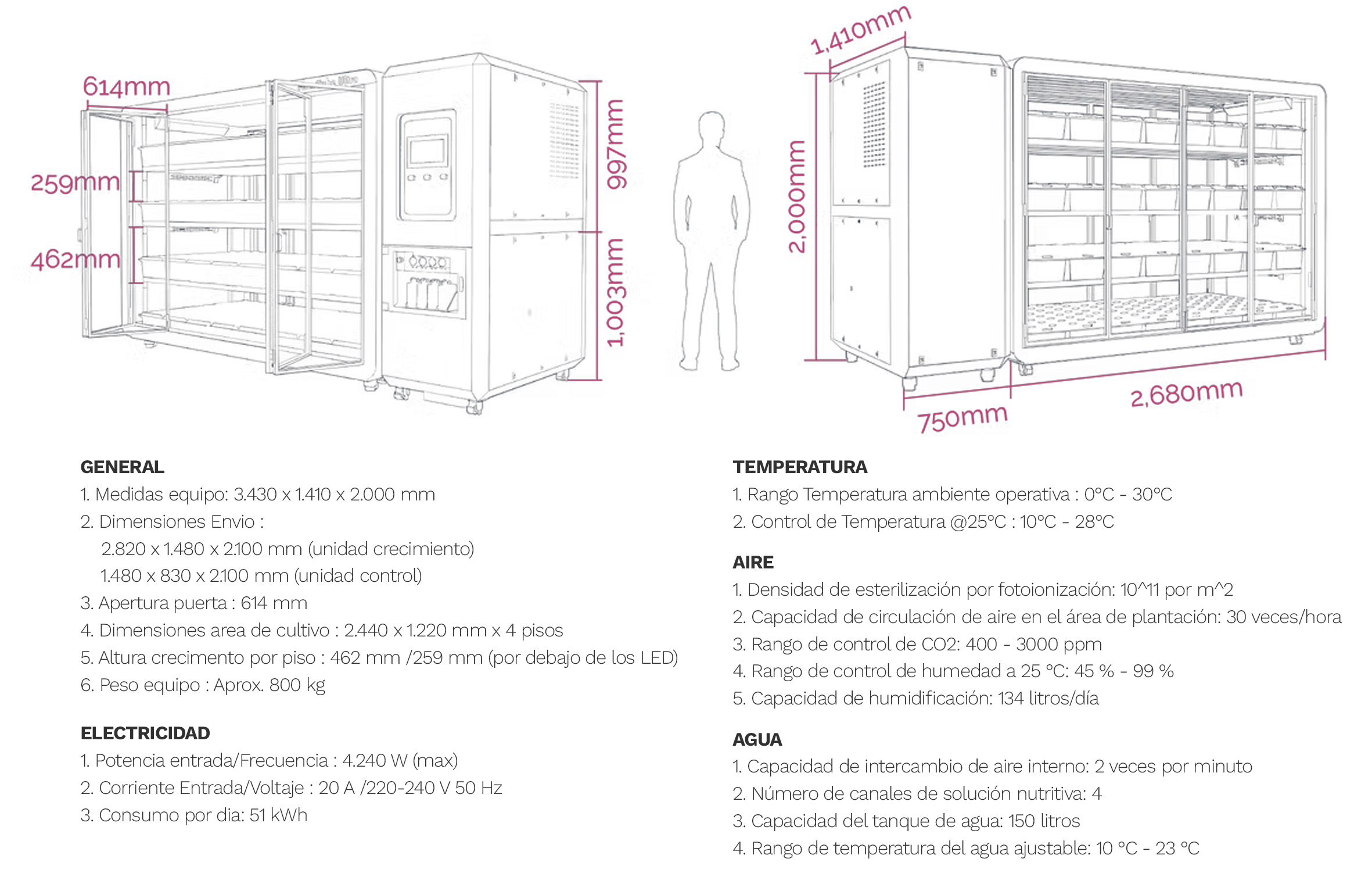 - Control de temperatura y humedad automatizado.